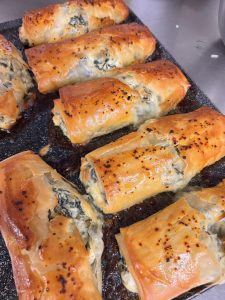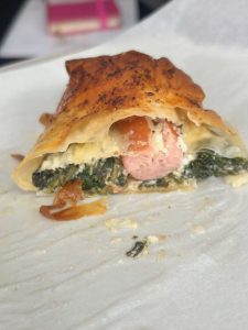 in addition we have a new meaty variety – a Hot Dog, and cheesy feta parcel. The trademark oozy cheese folded into a parcel with a hot Dog running through the centre. The inspiration for this comes from Street food in Albania, and again, the customers have been really excited to try them and everyone has loved them. Priced, at just £2.95, again its a great option and good value.